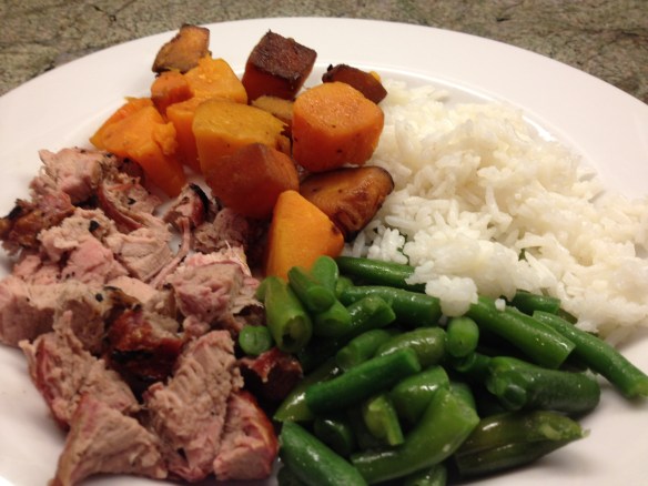 Pork Tenderloin, Butternut Squash, Green Beans, Rice, Side Salad