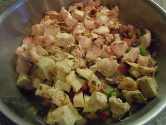 3. Hopefully the chicken was cooked earlier in the week so all you had to do was shred it. Otherwise cook the chicken ahead of time and store in refrigerator.