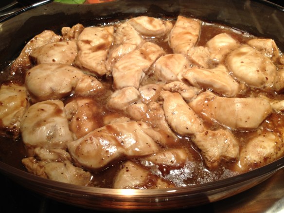 1. Wash and cut chicken and put in lightly sprayed roasting pan.