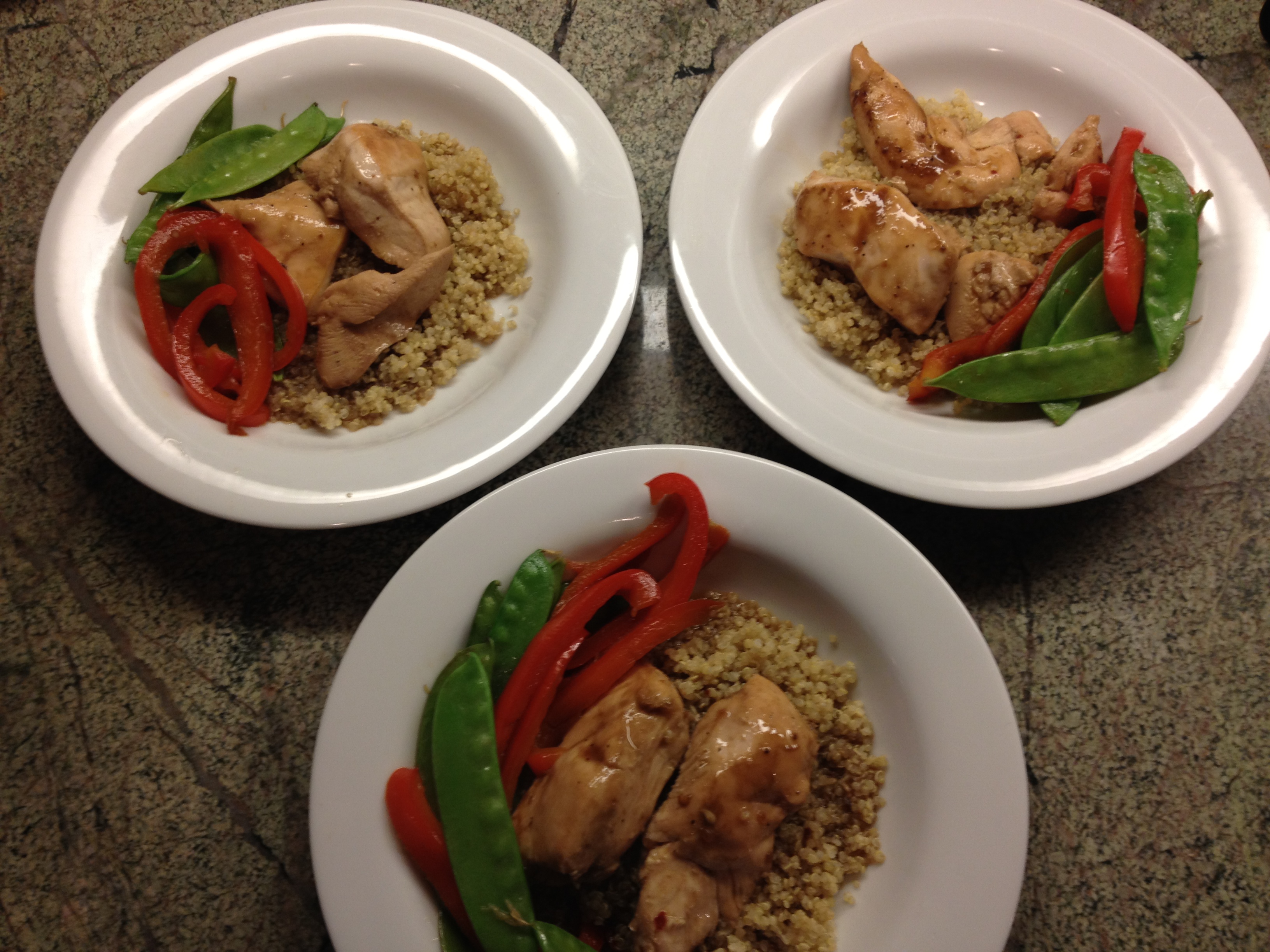 4. Make quinoa according to package directions. It should be ready as the chicken is coming out.