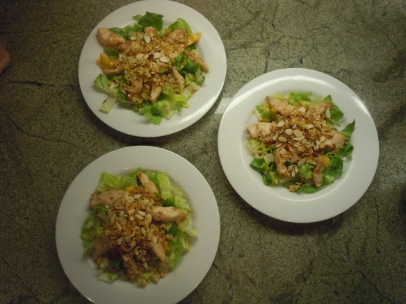 My husband and daughter loved the dinner and gave it a 9.5. My son said he liked it but it wasn’t as good as my past Chinese Chicken Salads… In thinking about his comment, 2 things were different – 1) I didn’t put any green onion in. I forgot to add it to my grocery list; and 2) Mandarins are not in season so I used Valencia oranges but they were not as sweet as the Mandarins. Other than that the recipe was the same. Perhaps his taste buds are off?!!? Interestingly, I am eating it again for lunch (right now), and it tastes great!