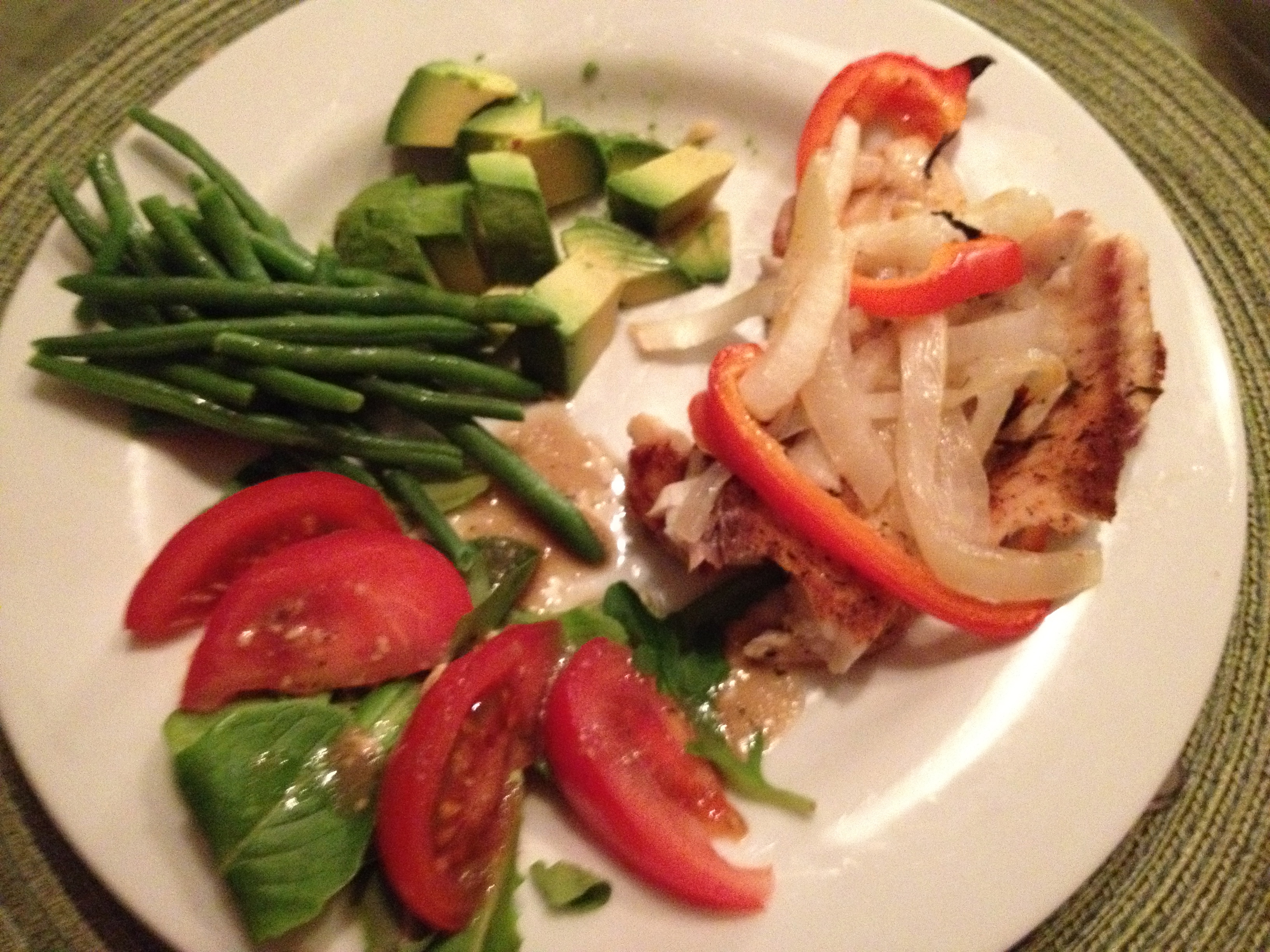 Once the fish was cooked, I portioned the fish and green beans on each plate and served.