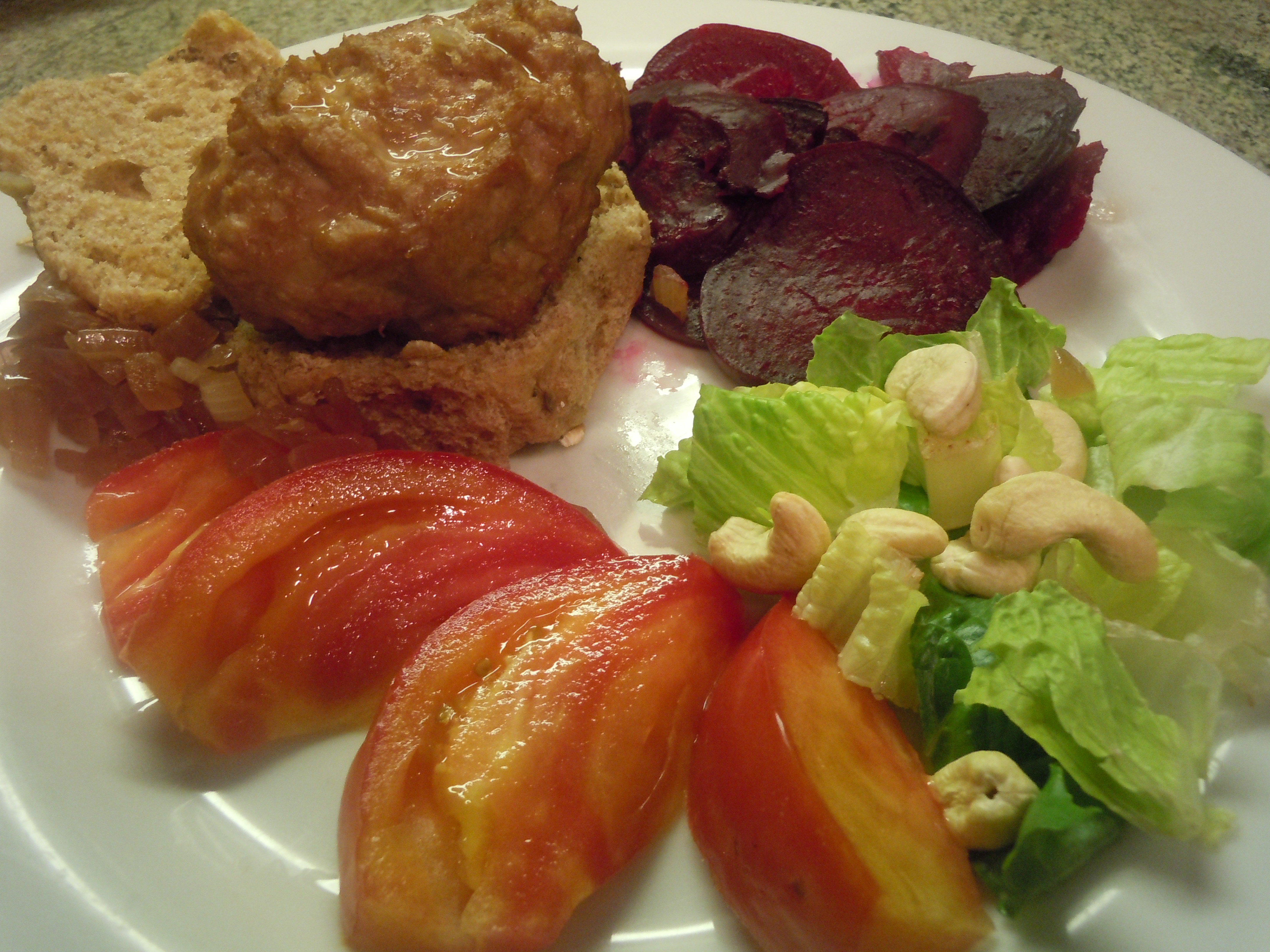 While I waited for the potatoes to boil, I quickly made the oatmeal muffins for tonight’s dinner.  Yes, I used a box.  Yes, I am proud of that.  Yes, they are delicious! There are lots of great box mixes out there.  I happen to like Dr. Oetker’s brand, and they are easy to adapt to the vegan requirements I must follow due to my daughter’s allergies.  I use flaxseed meal and water (3:1 ratio) for the egg, and rice milk or coconut milk for regular milk.  Just to be more healthy and less caloric, instead of using oil, I substitute equal amounts of applesauce.