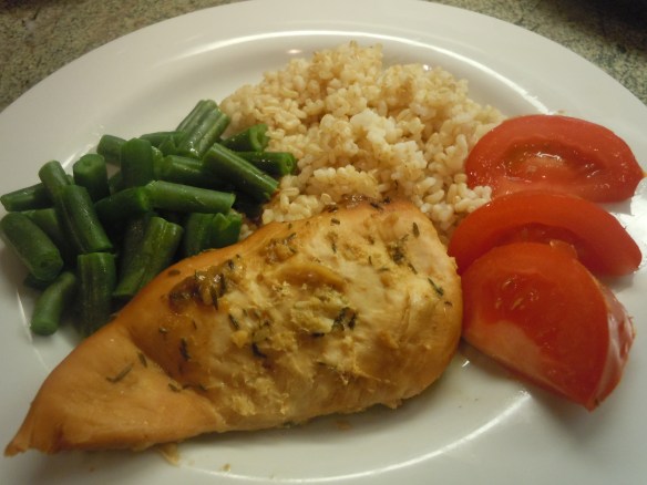 I made Dilled Vegetable-Barley Soup, in keeping with my goal of making one vegetarian dish a week. It is not a slow cooker recipe so it is probably a good one to make ahead of time when you can leave it on the stove and busy yourself with something else.  I, for instance, prepared other meals. Starting with what we were eating tonight, I first prepared the barley.  It’s a 1:2 barley water ratio.  I put in ¾ of a cup of barley and 1 ½ cups of water and brought it to a boil.  Then I turned down the heat to simmer and cooked for about 30 minutes.