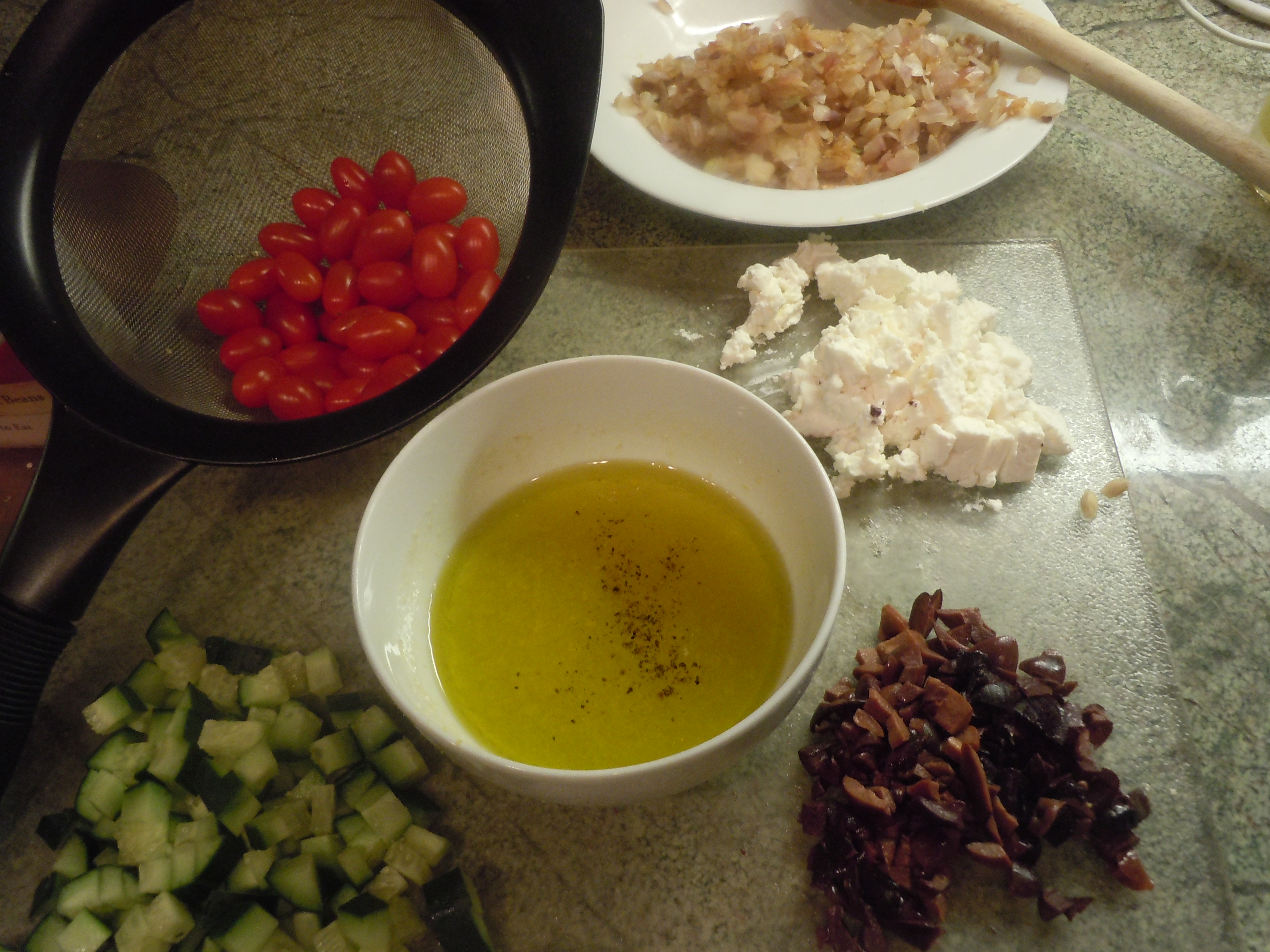 Serving the leftovers was the way to go. Making a 3rd dish was just too much work and there was plenty of the orzo dish to go around.  I rarely serve the exact same thing twice in a row, but I am doing it today.  Will the ratings go down?  I expect a less than enthusiastic response from my daughter.