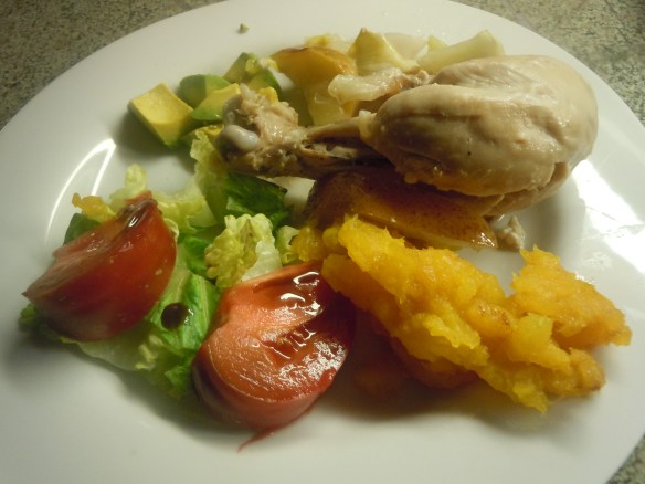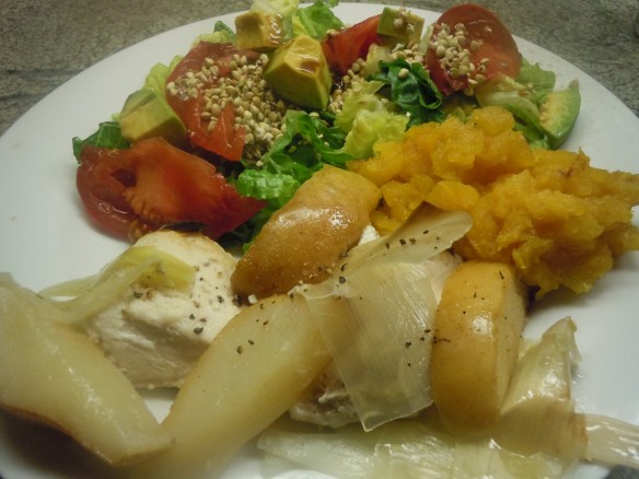 Roasted Chicken, Apples and Leeks, with Pumpkin and a Side Salad.