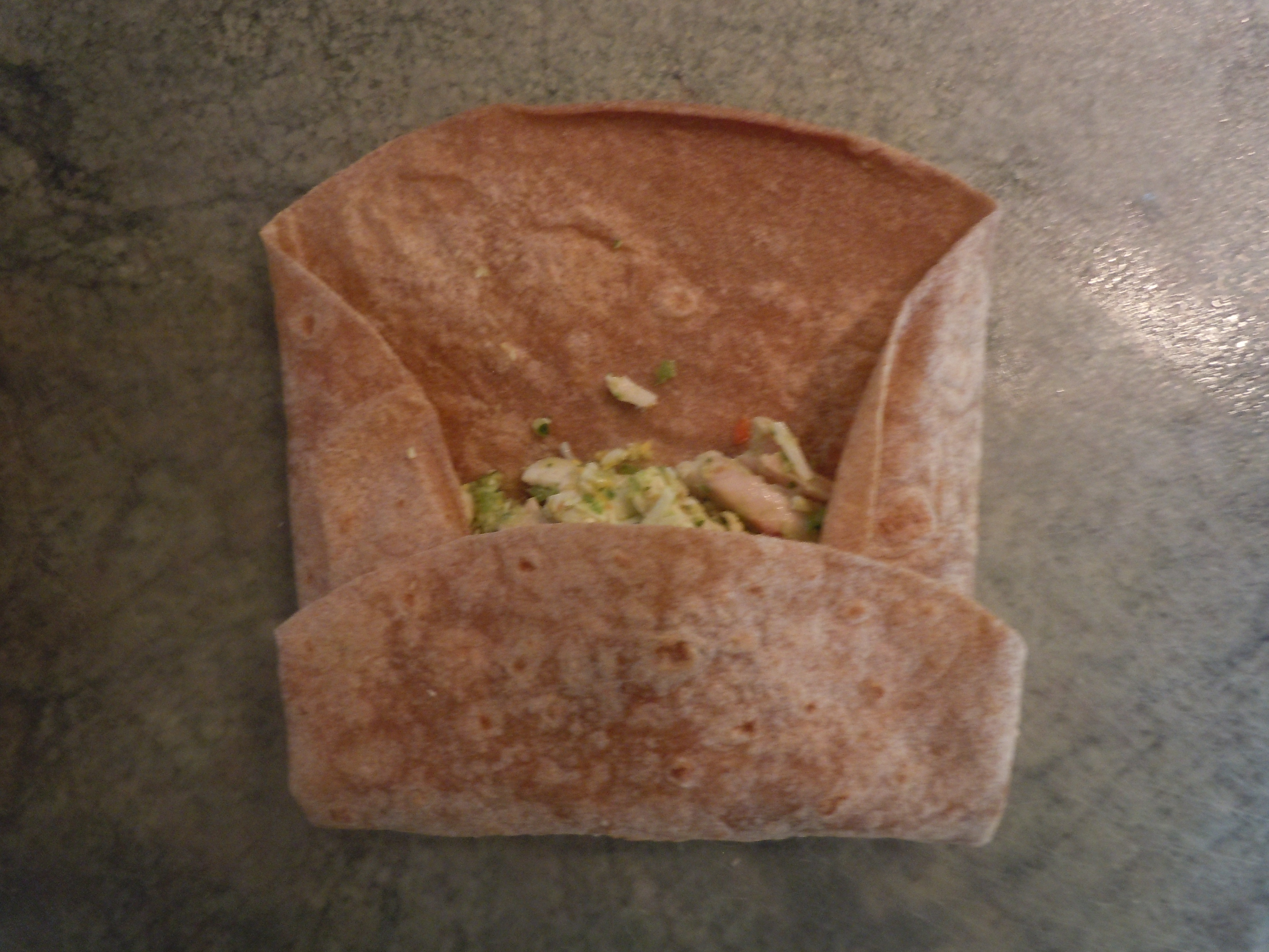 6. For flour tortillas, which are larger, fold the sides of the tortilla in, fold up the bottom flap and roll.