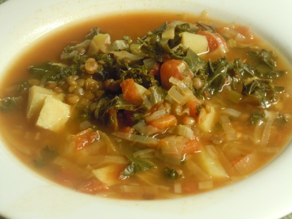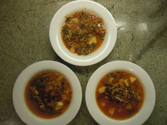 The ratings are always interesting. My son rated the soup a 9, and had a bit more soup. My daughter, who was not crazy about seeing the kale in the soup, had this to say, “When I eat a spoonful that does not have the green stuff in it, it’s a 9. When I eat a spoonful that does have the green stuff, it is a 7 ½. I explained that the “green stuff” is kale, and that it has a lot of great health benefits, but it didn’t change her ratings. My husband, who came home later and ate dinner separately, rated the soup a 9.