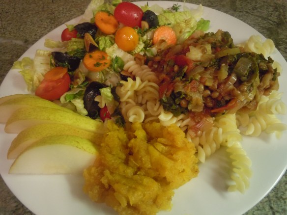 Once the soup was boiling, and feeling really good about how easy and mindless this recipe was, I added the sweet potato, kale, lentils, thyme, salt and pepper, simmering for about 30 minutes. Uh oh, my menu called for apple-cinnamon muffins. It is a really easy muffin mix, but I didn’t put that on my shopping list. I had forgotten to purchase the mix! YIKES!